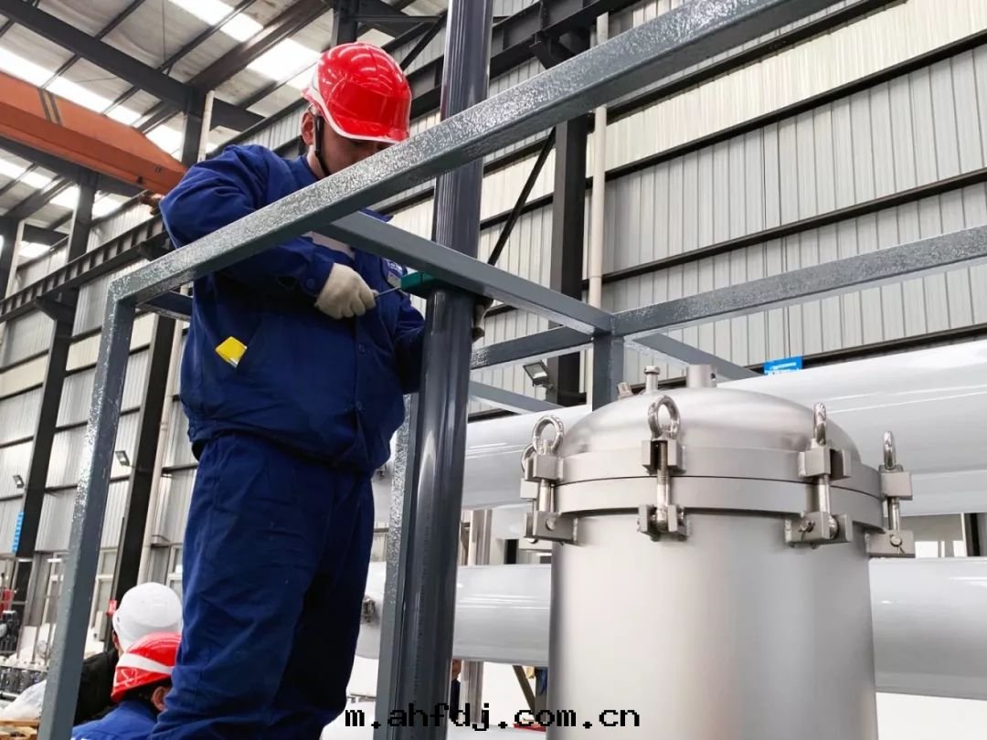 2.其(qí)餘三(sān)套(tào)膜柱(zhù)單元(yuán)完成(chéng)底架單元(yuán)、膜柱(zhù)支架及(jí)産水(shuǐ)主(zhǔ)管(guǎn)路(lù)安(ān)裝(zhuāng),高(gāo)壓泵電(diàn)机裝(zhuāng)配两(liǎng)台,完成(chéng)一(yī)台循环泵及(jí)相應(yìng)高(gāo)壓管(guǎn)路(lù)裝(zhuāng)配。