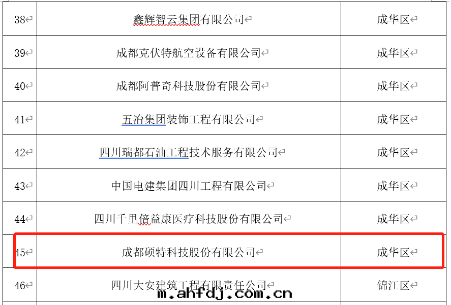 近日(rì),由(yóu)成(chéng)都市(shì)經(jīng)濟和(hé)信(xìn)息化(huà)局(jú)組織开展(zhǎn)的(de)2021年(nián)成(chéng)都市(shì)企業技术中(zhōng)心(xīn)認定(dìng)工作(zuò)結束(shù),公(gōng)布(bù)了(le)2021年(nián)成(chéng)都市(shì)企業技术中(zhōng)心(xīn)名(míng)單,碩特(tè)科技成(chéng)功認定(dìng)为(wèi)“成(chéng)都市(shì)企業技术中(zhōng)心(xīn)”。